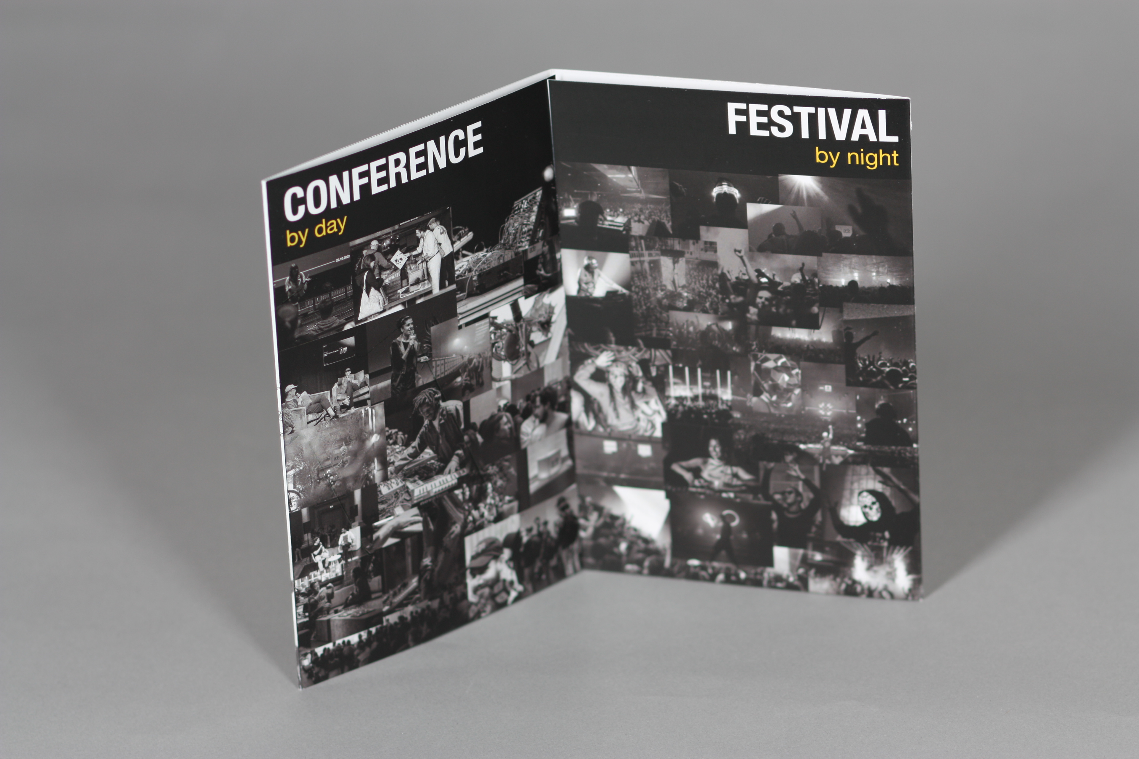 I stuck with the black and yellow color palette of the festival and incorporated imagery from the festival site to make it look as if it was an official invite. I wanted to use both images and color in a bold, unique way to make the mailer stand out so the mailer would be memorable, reflecting the experience in which attendees would get if they registered for the event.